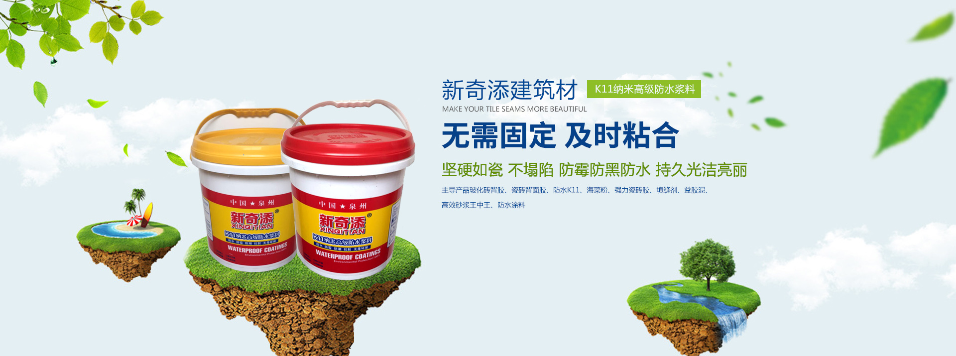 泉州市新奇添建筑材料有限公司成立于2010年,注冊資金500萬元,是一家專業(yè)從事高端防水材料、新型墻體材料、建筑材料設(shè)備的研發(fā)、生產(chǎn)和銷售的新興高科技企業(yè)。公司人員組成,以高、中級專業(yè)人才為主體。其高科技含量達(dá)國內(nèi)外同行業(yè)先進(jìn)水平,在所涉領(lǐng)域具備強(qiáng)大的科技優(yōu)勢與核心競爭力。公司憑借強(qiáng)大的研發(fā)能力和成熟的高科技產(chǎn)品,在綠色環(huán)保建材領(lǐng)域異軍突起。